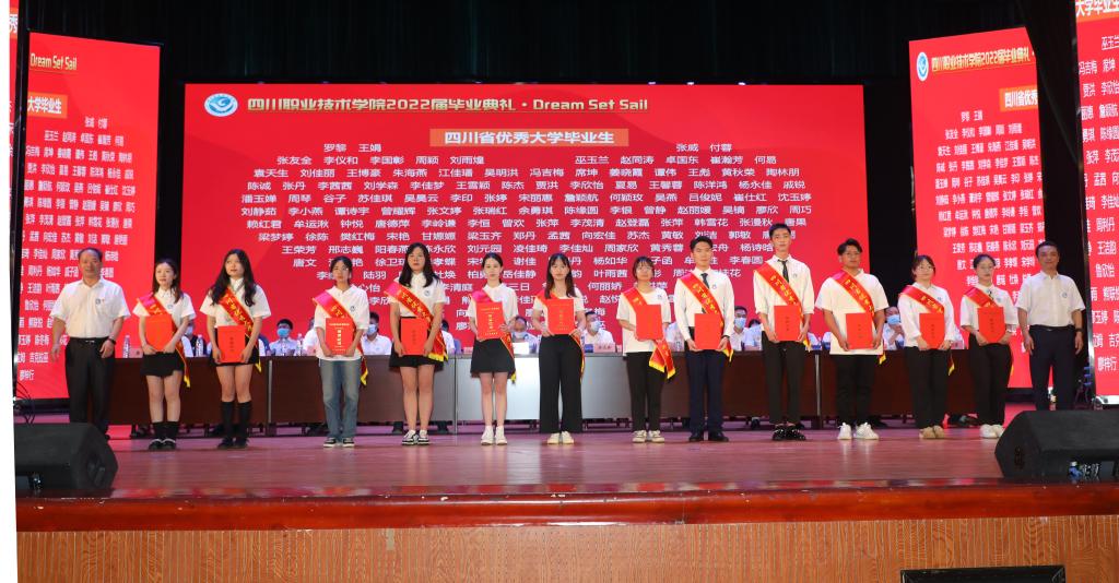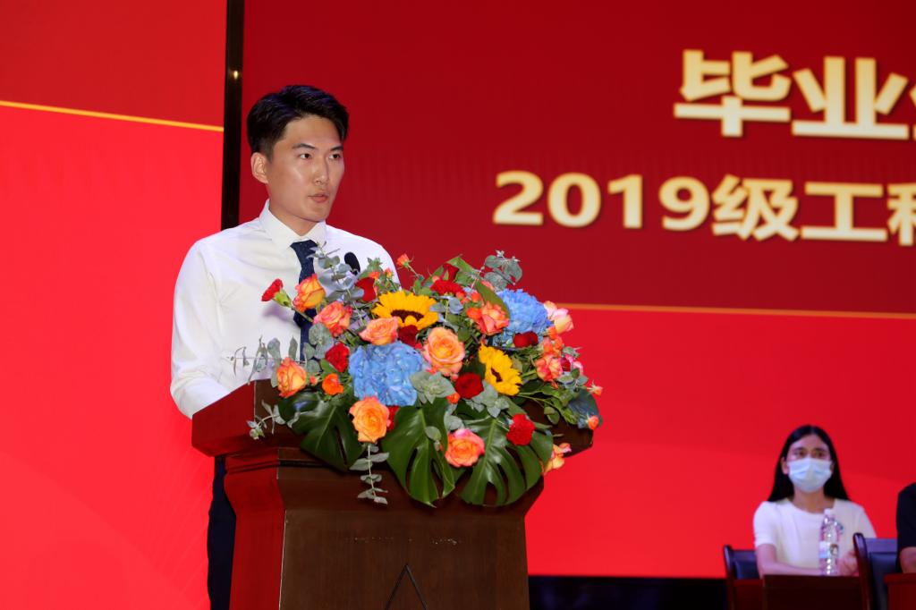 來自建築與工程學院2019級工程造價1班的劉學森代表全體畢業生發言。他總結三年來學習與成長的收獲,深切表達了對學校領導、老師的感激之情,号召全體畢業生要立鴻鹄志、做奮鬥者,努力在青春的賽道上跑出2022屆川職學子的最好成績。