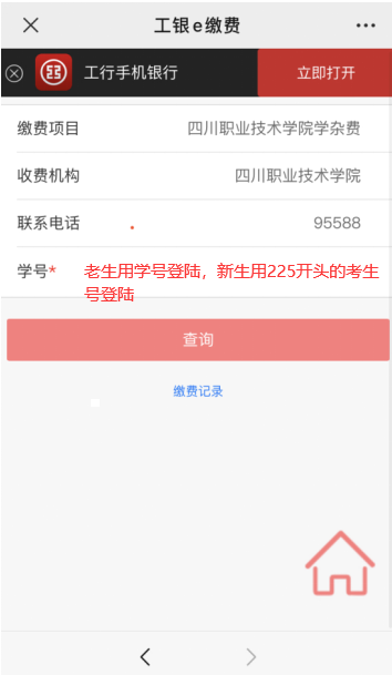 2.在登錄界面的學号*欄,2022級新生用“225開頭的考生号”登錄2020級、2021級學生和藏區1+2轉錄學生用學号登錄,由于同班學生學号隻有末尾兩位數不同,另外同名同姓學生較多,登錄後請務必核對個人信息,以免交錯費用。操作方式見下圖: